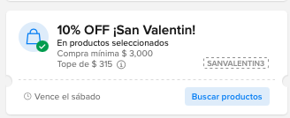 SANVALENTIN3 - Beneficio: 10% OFF.