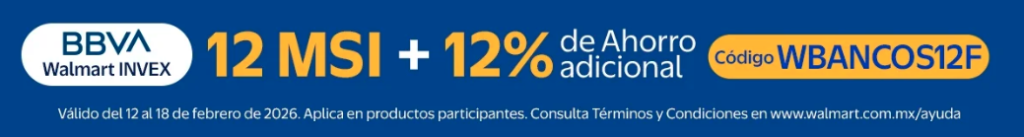 Esta promoción es exclusiva para compras en línea y aplica si pagas con Tarjetas de Crédito BBVA o las tarjetas de casa Walmart Invex y Sam’s Invex.